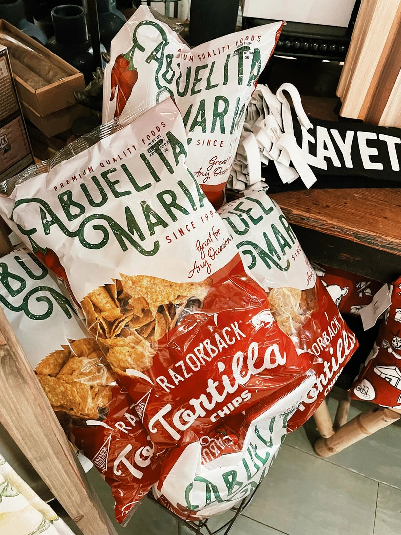 Treat your friends and family during your tailgate party or over the comfort of your home with Abuelita Maria Razorback Chips.Â