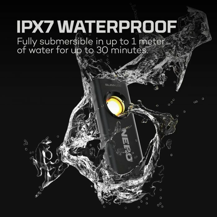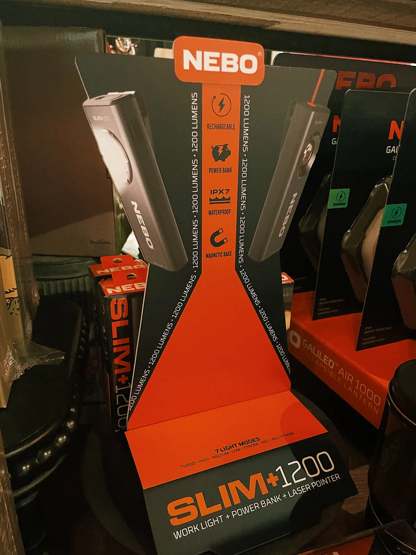 The SLIM+ 1200 is a thin, powerful, rechargeable 1,200 lumen pocket light with a red laser pointer and a Power Bank to charge your USB powered devices. Waterproof (IPX7) and equipped with Smart Power Control, the SLIM+ 1200 also features a magnetic pocket clip and powerful magnetic base for convenient hands-free lighting.
