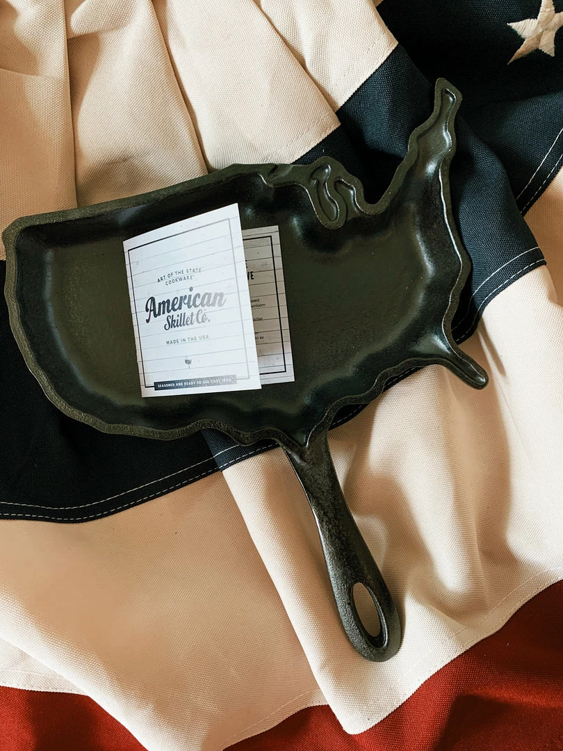 This cast iron pan honors all the flavors of American cooking. From morning frittatas to game day dips. Call up your friends, start the oven, and dive into a contiguously-shaped serving dish with American pride.