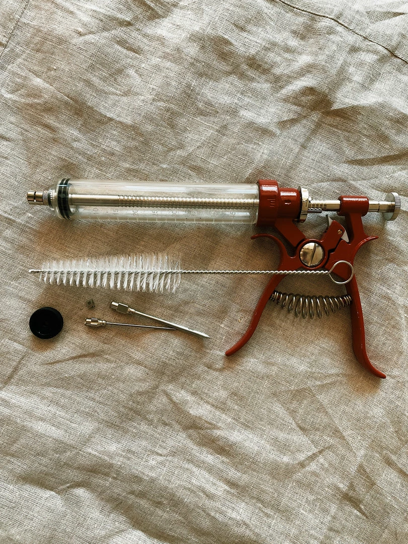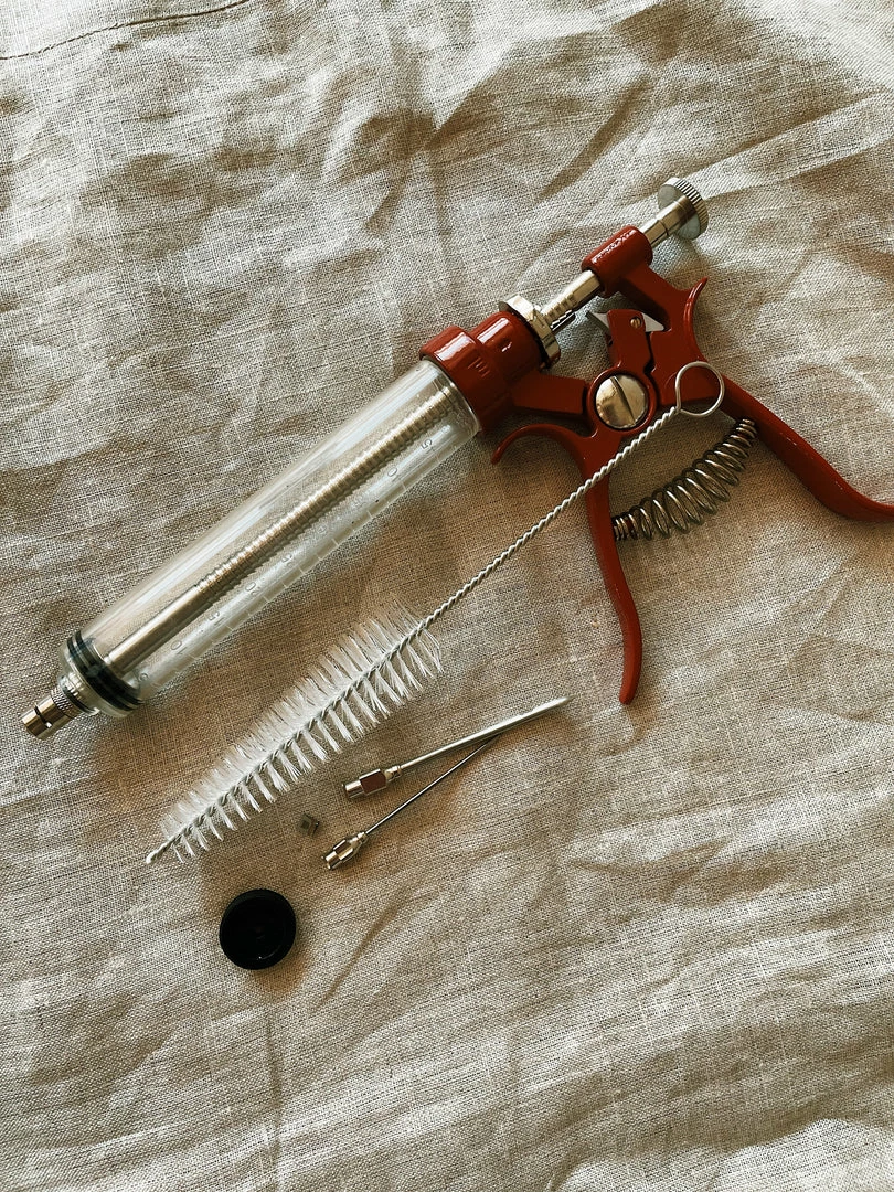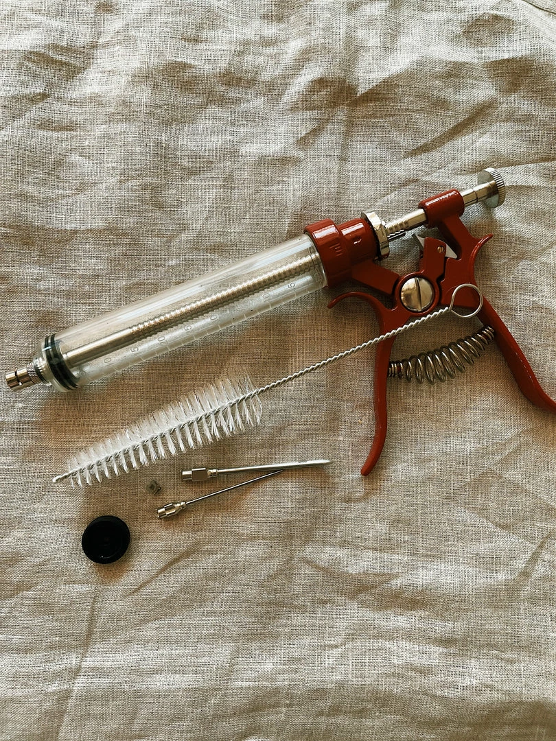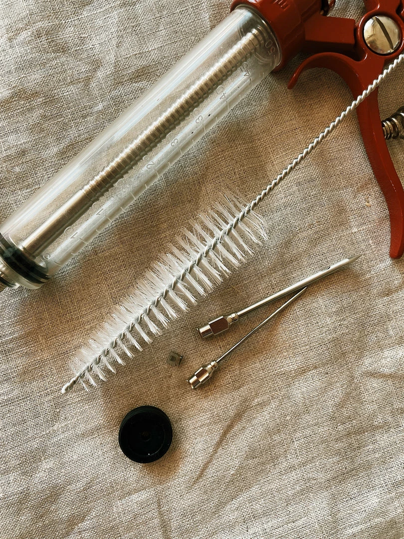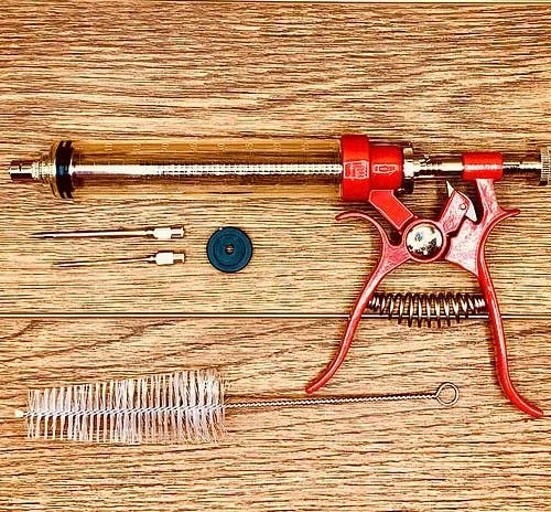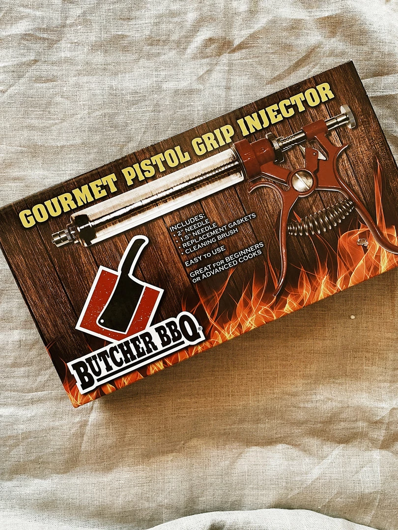 Butcher BBQ’s meat injector is the best meat injector you can buy. Made with a metal handle, 50cc pistol grip syringe. Easy to use and clean. Comes with replacement gasket, a cleaning brush, and 2 different needles for different meats. Don’t be fooled with injectors made of plastic handles. With proper care this injector will last years.