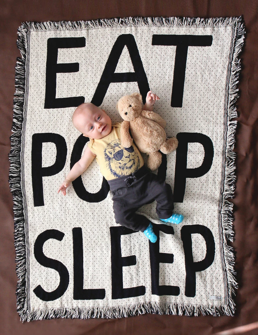 Some of our favorite beings (furry friends and babies alike) can really only handle the basics. This mini throw blanket is for them. Classic black and white to fit any decor. Makes a great gift for your friend whose got an adorable eating, pooping, and sleeping machine.
