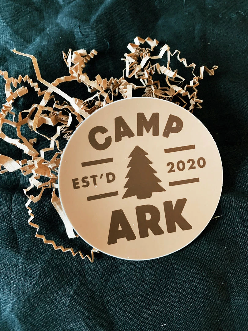 High-quality, weatherproof, 4 inch diameter circular brown sticker.