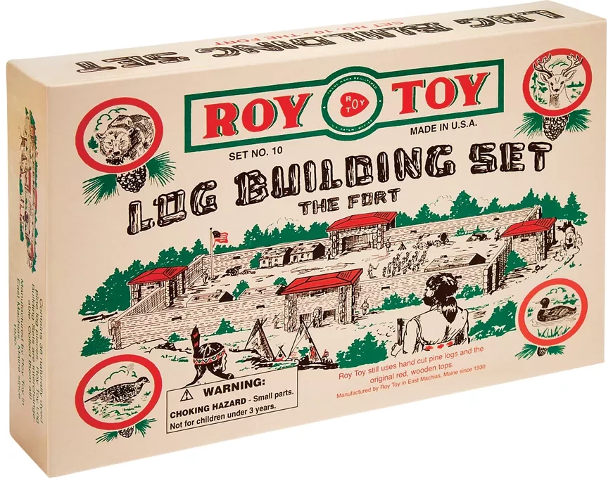 As you sit and watch your child build their first fort, your thoughts will drift back to the good old days when you were a small child mastering your building skills. Channel Craft’s Roy Toy The Fort Log Building Set is made of all-natural pine that is dyed with a food-approved dye and sanded to a smooth finish. The packaging features the original artwork from the 1930s. Ages 5+. Made in USA.