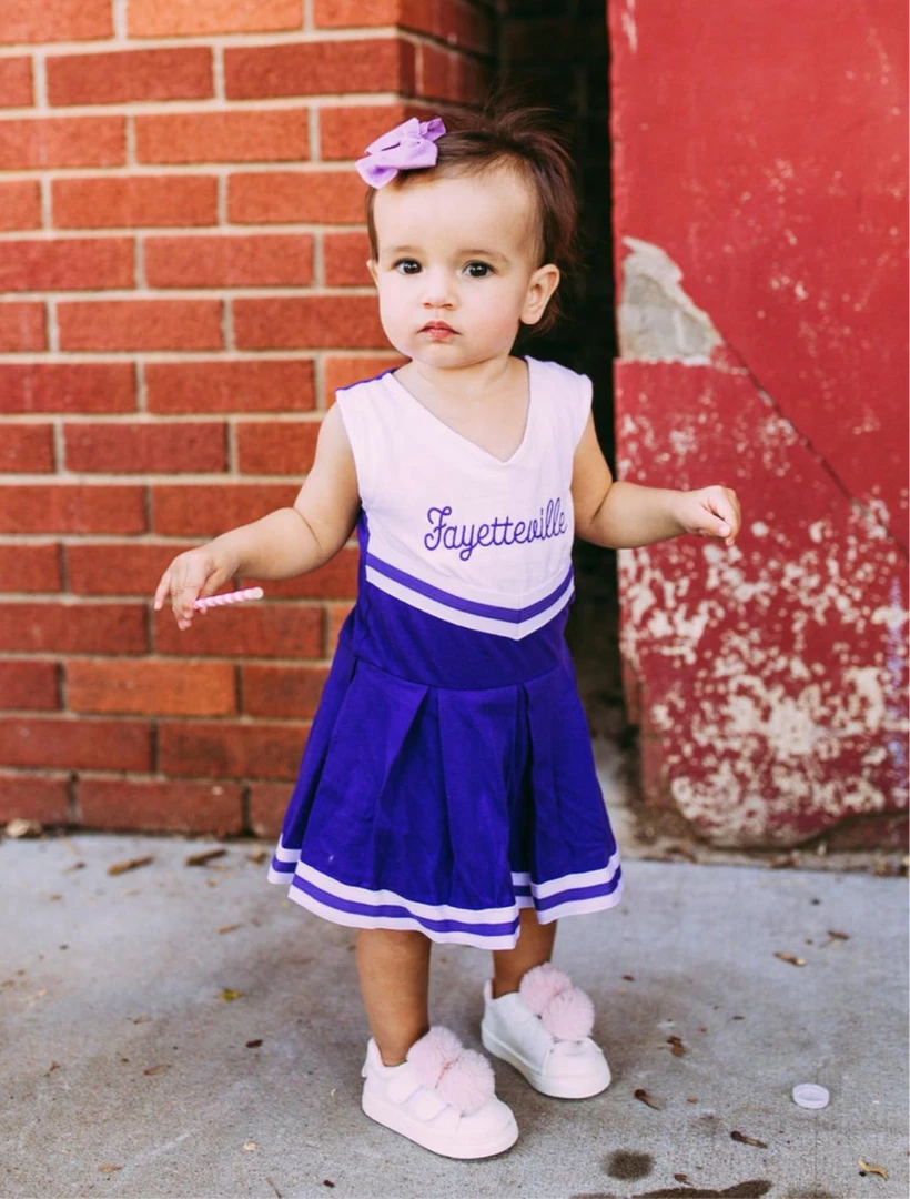 Go Dawgs! Let your little show off their Fayetteville pride in this delightful cheer outfit.