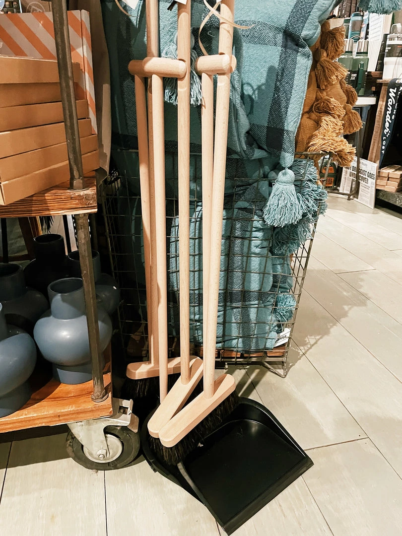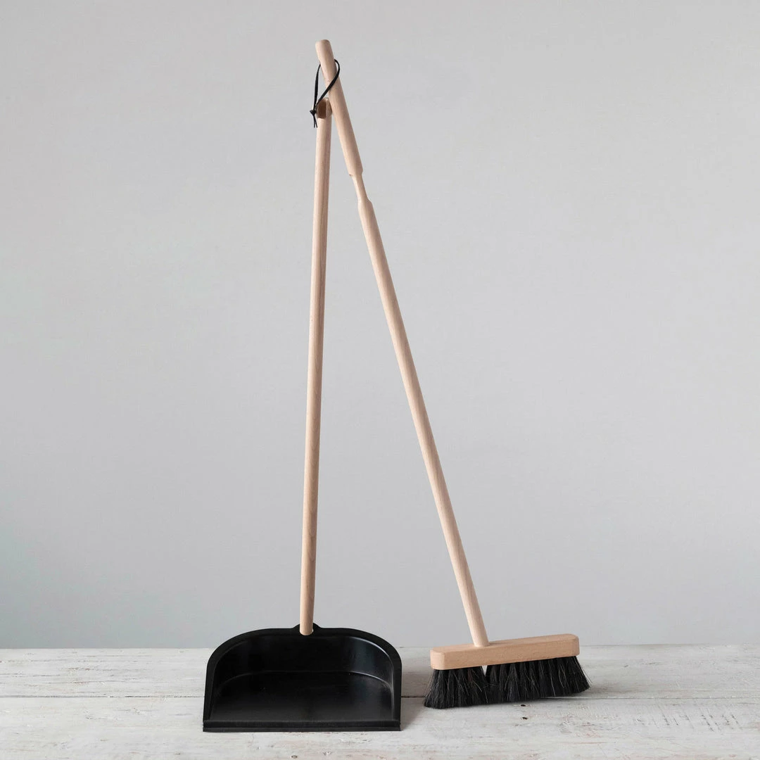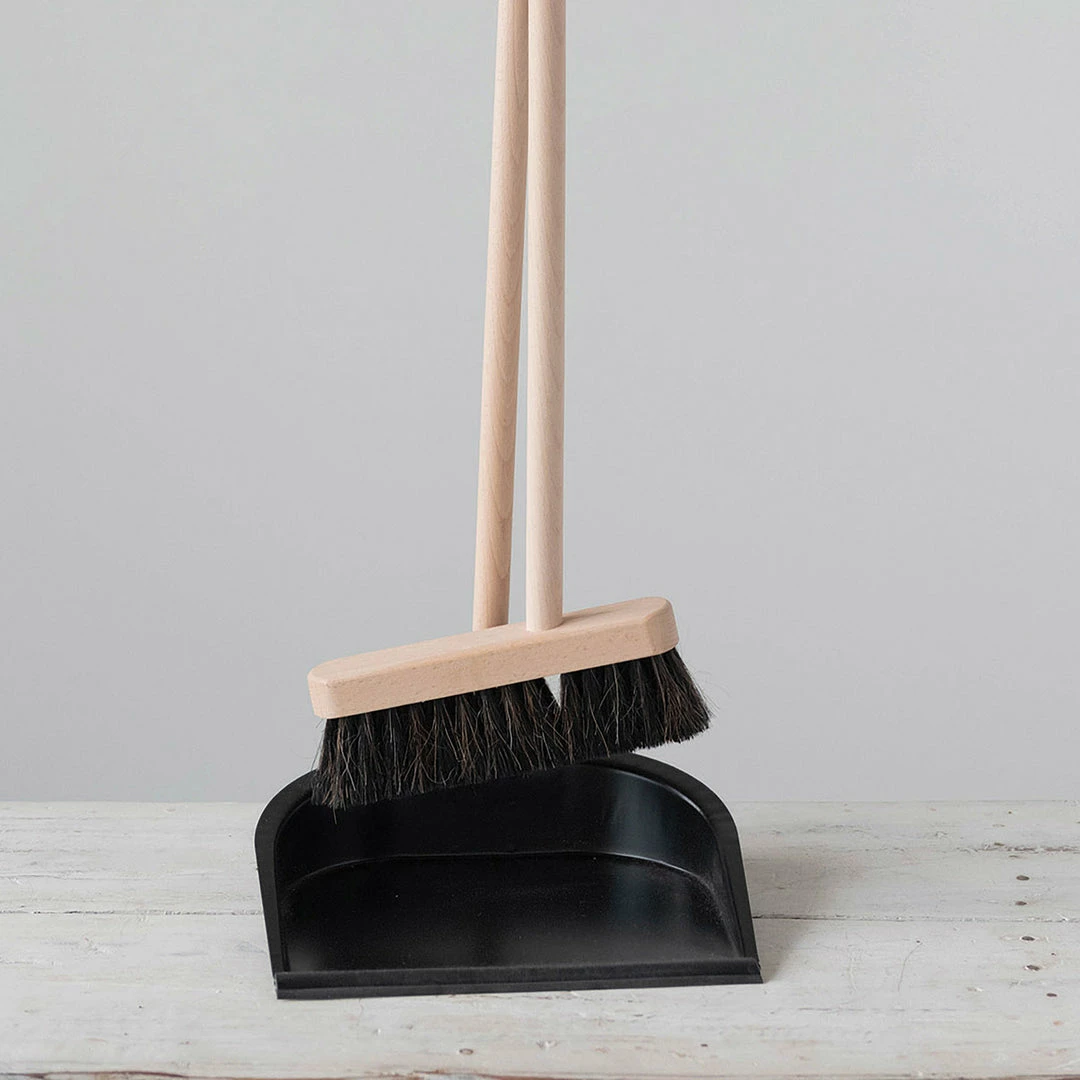 This metal dustpan is perfect for cleaning your home in style. With a sleek design, this beech wood broom and standing metal dust pan is both practical and beautiful. Easily clean up any mess and do it in style.