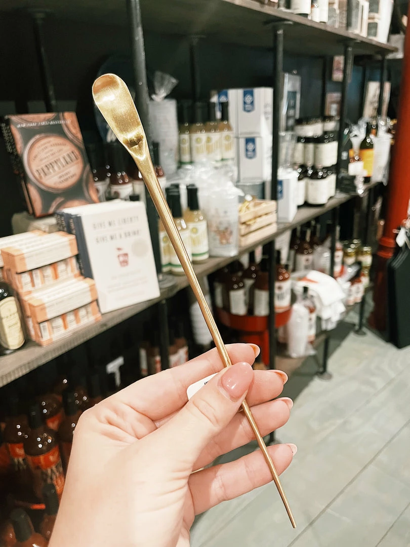 Whether it be for stirring a homemade cocktail at a party or just a nice summer tea, this cocktail spoon is a must-have. It is brass and thin, which makes it a great simple utensil for the kitchen. It is lightweight which makes it perfect for cook outs and dinner parties with friends.