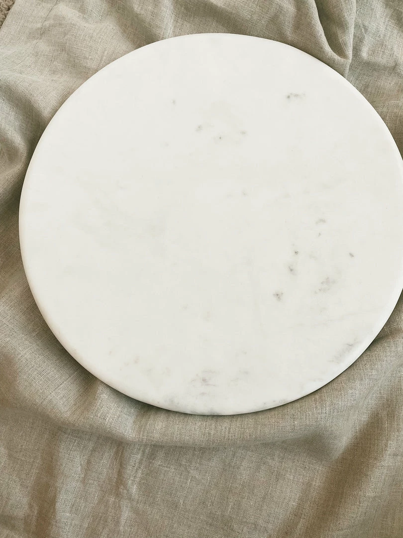 This lazy Susan is any hostess’s dream. Made out of a beautiful and sleek white marble, this lazy Susan is perfect for distributing foods in style to guests, or stored in a cabinet for easy access to different foods or utensils. Combines practicality and style.