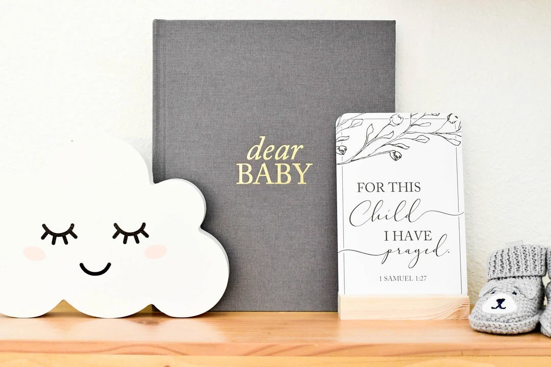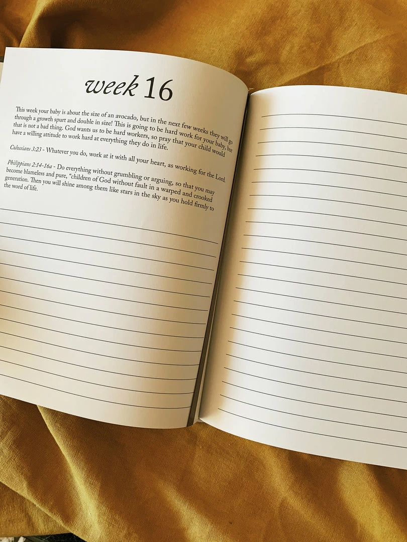 This pregnancy prayer journal is a great baby keepsake for any mom. Each week of pregnancy has a page that describes your baby’s development and gives a prompt (with scripture) to guide you in praying for your baby as they grow. This journal also includes many other milestone pages to help you always remember the little and big moments that happened during this special season.