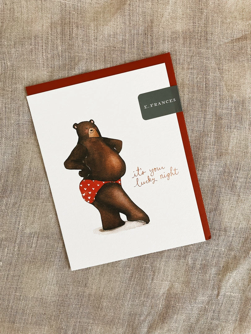 Each E. Frances card begins as an original watercolor painting, is then printed in brilliant color on luxe, heavyweight paper and finally kissed with copper foil.