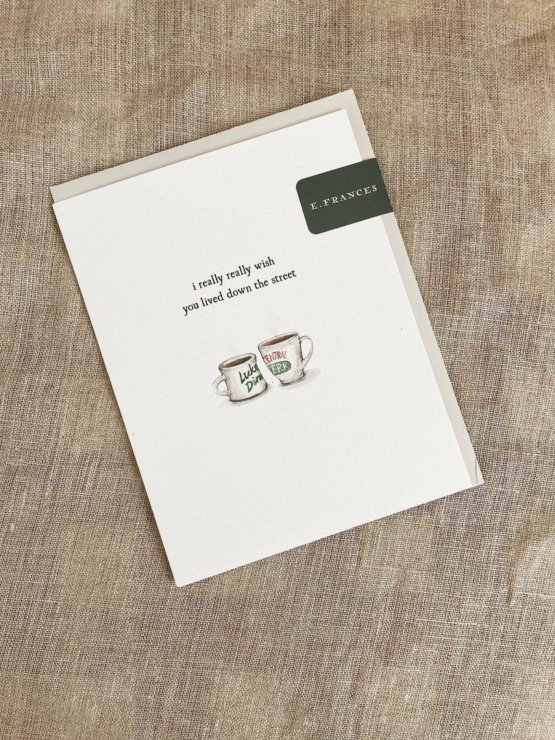 Dream street. We talk about it all the time. Who would you pick? Pretty much everyone needs to buy this card when they see it, their minds daydreaming of which friends they can just waltz in on, morning coff in hand. Oh, it’s the best daydream!