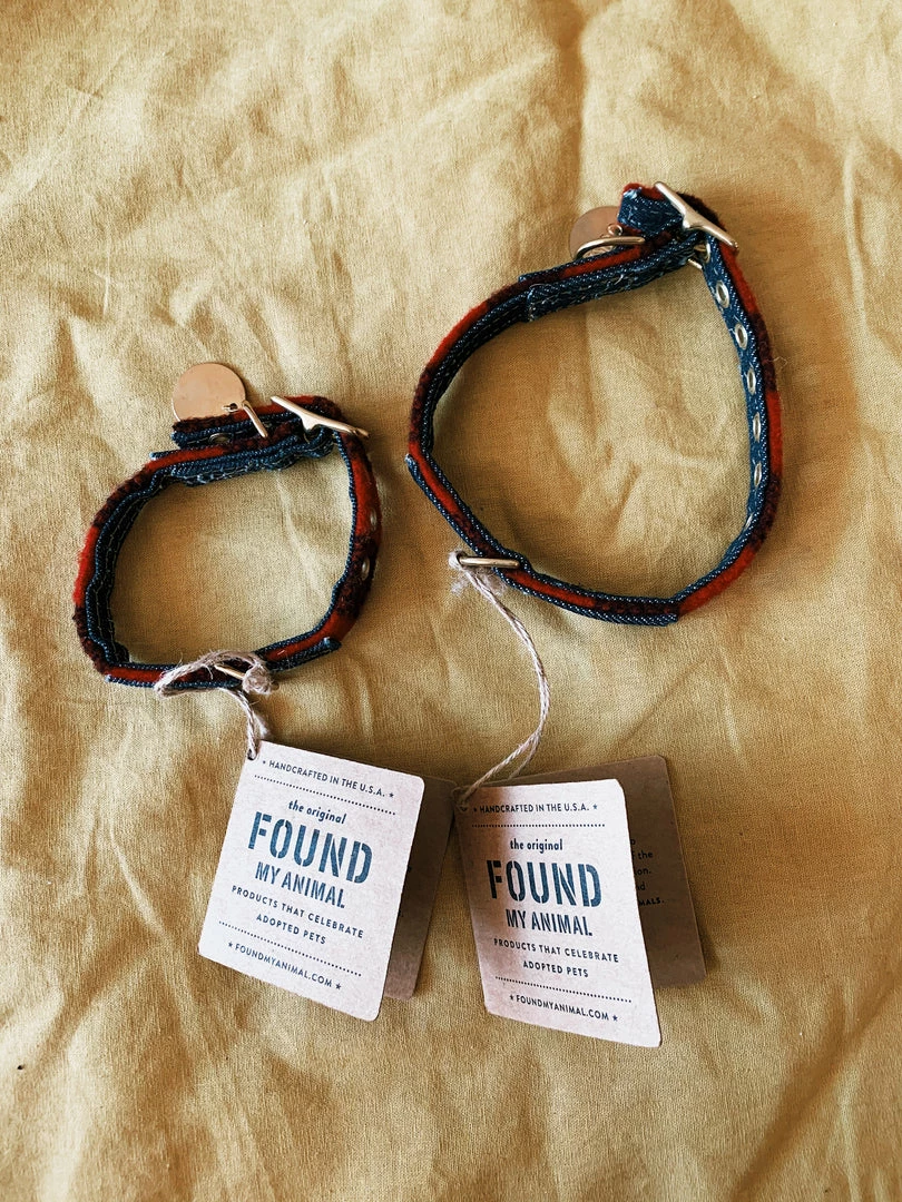 The Found My Animal heavy weight commercial grade 100% cotton canvas collar with Buffalo Plaid wool is as rugged as it gets, constructed from cotton canvas with waxed coating for increased strength and protection. The collar is top stitched for extra durability with industrial thread. The collar is handcrafted in our New York studio from high quality materials and made with care.