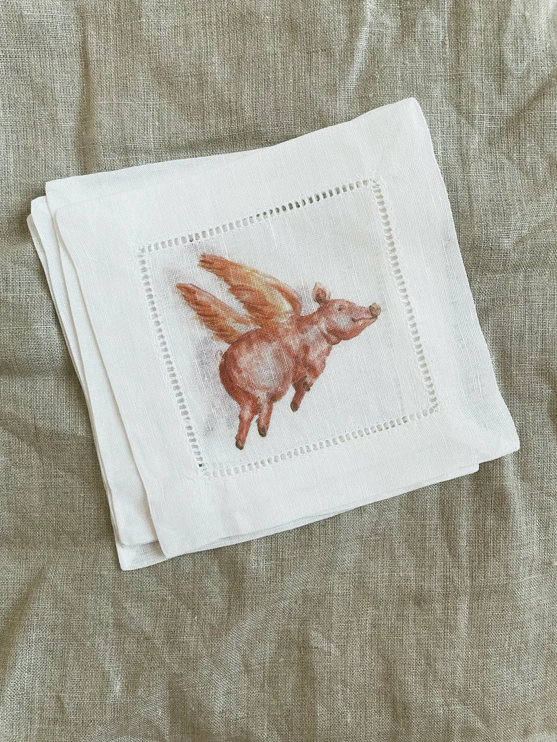 French Graffiti Flying Pig Cocktail Napkins