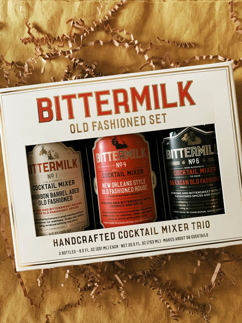 A fresh look on our favorite gift set. An old fashioned, three ways — get all three Bittermilk old fashioned style cocktail mixers with the Old Fashioned Set cocktail mixer trio. Packaged in a foil stamped box, it makes a great gift.