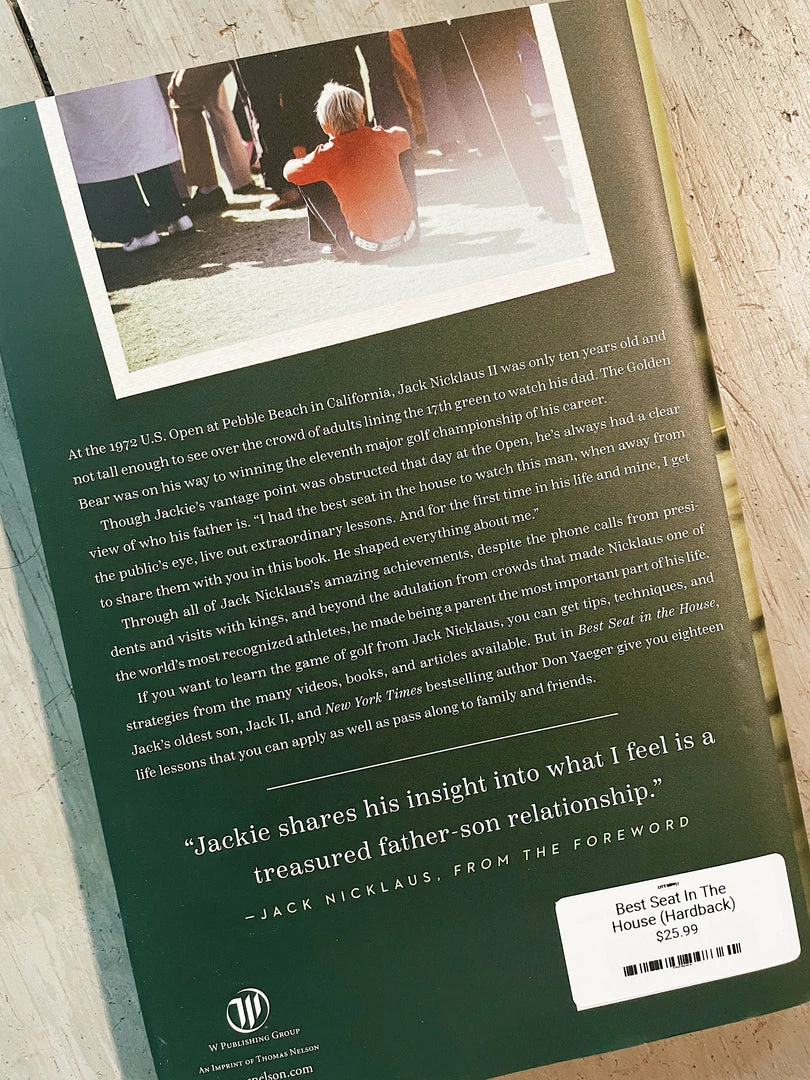 Best Seat in the House, written with New York Times bestselling author Don Yaeger, gives us eighteen valuable lessons that Jack Nicklaus II learned from his father, PGA champion Jack Nicklaus. Although the “Golden Bear,” as he is known by fans, is widely regarded as the best golfer of all time, with a record number of PGA major championships, his life and values show that true legacy lives on through your children, grandchildren, and others we are blessed to call family and friends.