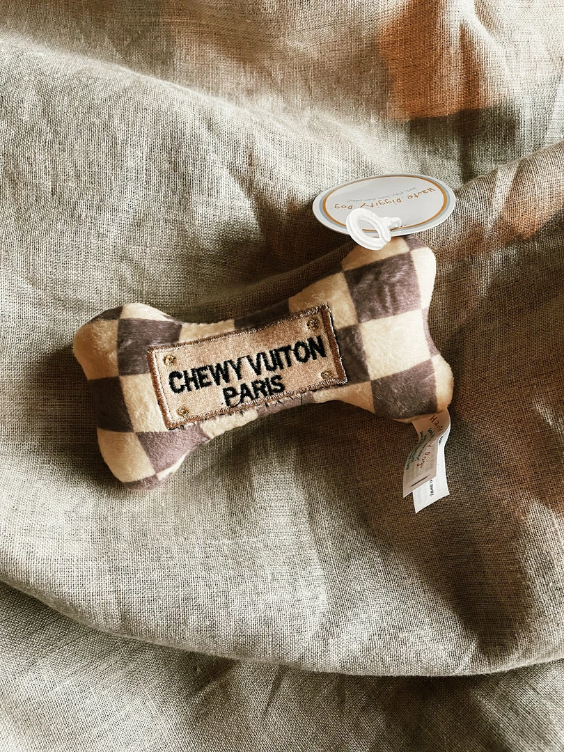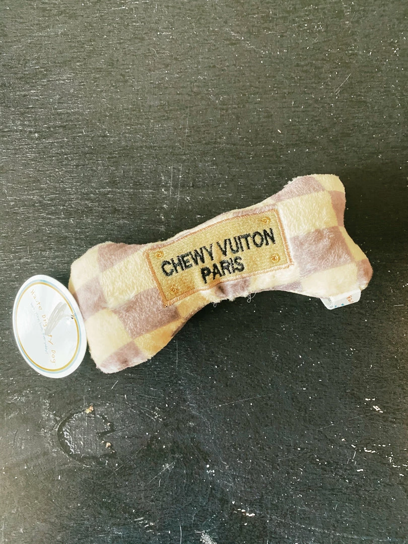 Chewy Vuiton bone is a great toy for your dog or to give as a gift to any pampered pooch on your list. Chewy vuiton checker bone toy is made from soft plush material with a squeaker inside. Your dog will love playing with this cute, fun toy!