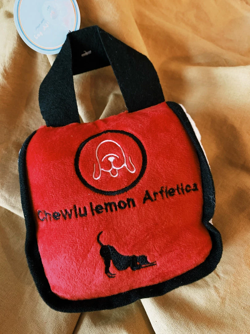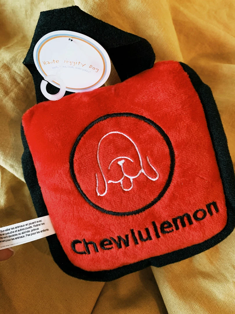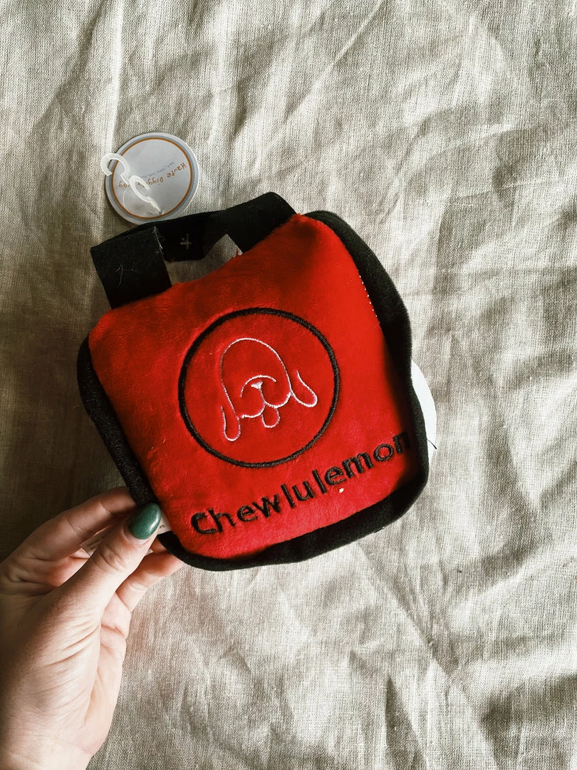 Chewlulemon Bag Plush Toy Your downward dog will love this fun, new toy! Chewlulemon has a soft, plush exterior with a squeaky inside that drives dogs crazy. Every Pampered Pup should have one.