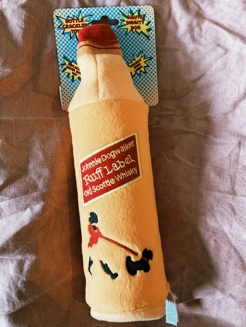 Haute Diggity Dog Johnnie Dogwalker Water Bottle Crackler Dog Toy