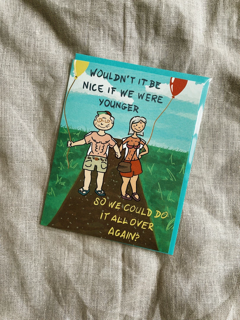 From our capsule collection – lil’ kingdom – a lighthearted collaboration with artwork by Avery Tosi. Our Over Again greeting card is printed and foiled in Memphis, TN.