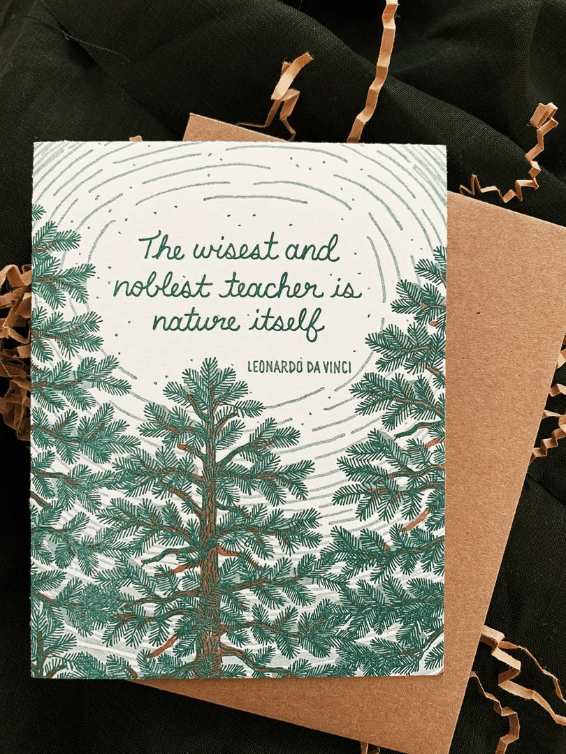 Card reads, “The wisest and noblest teacher is nature itself. – Leonardo Da Vinci”