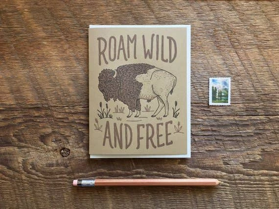 Card reads, “Roam wild and free”