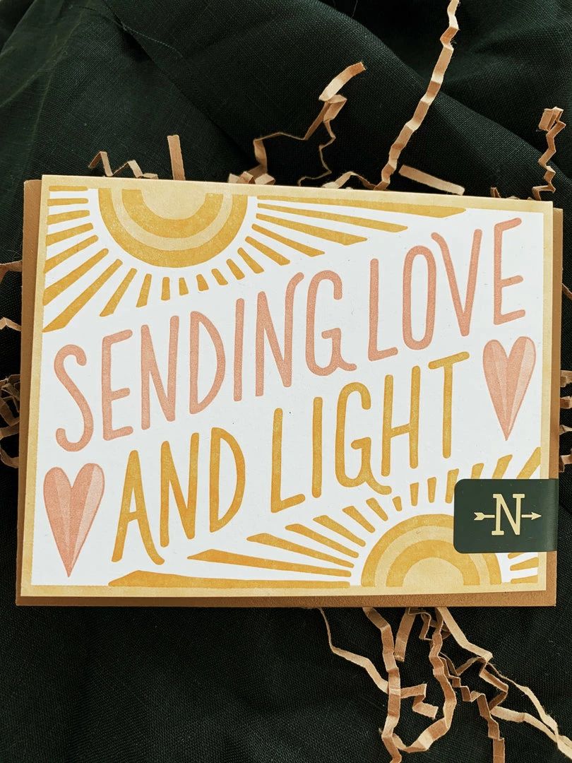 Card reads, “Sending love and light”