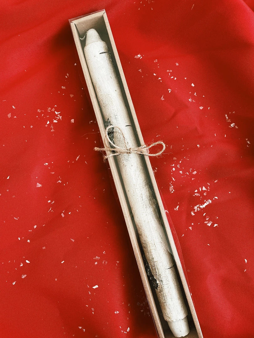 A pair of this candle would be show-stopping on a mantle or tablescape for the winter season!