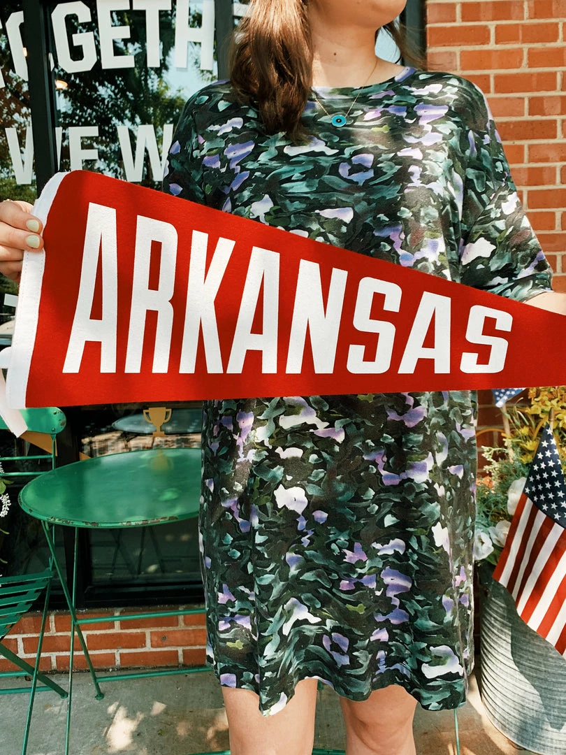 The Arkansas pennant is perfect for dorms, bedrooms, bulletin boards, and just about any wall in your house! Great gift for graduates and those new to the state.