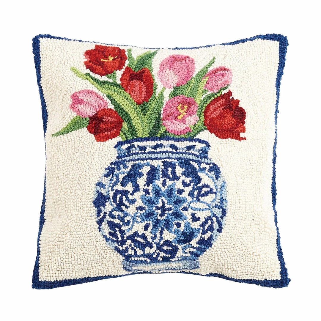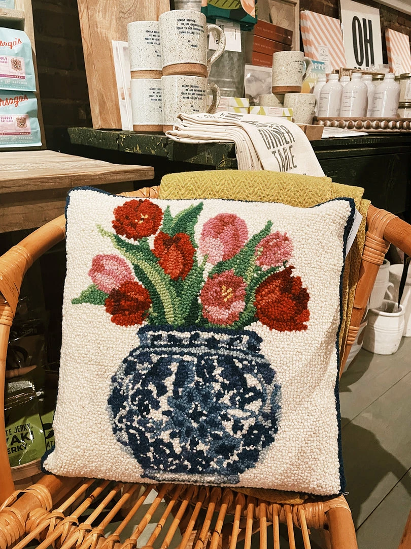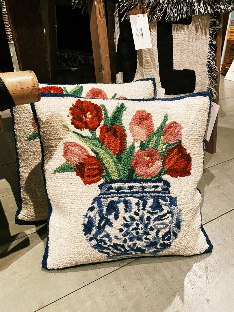 100% wool hooked square accent pillow