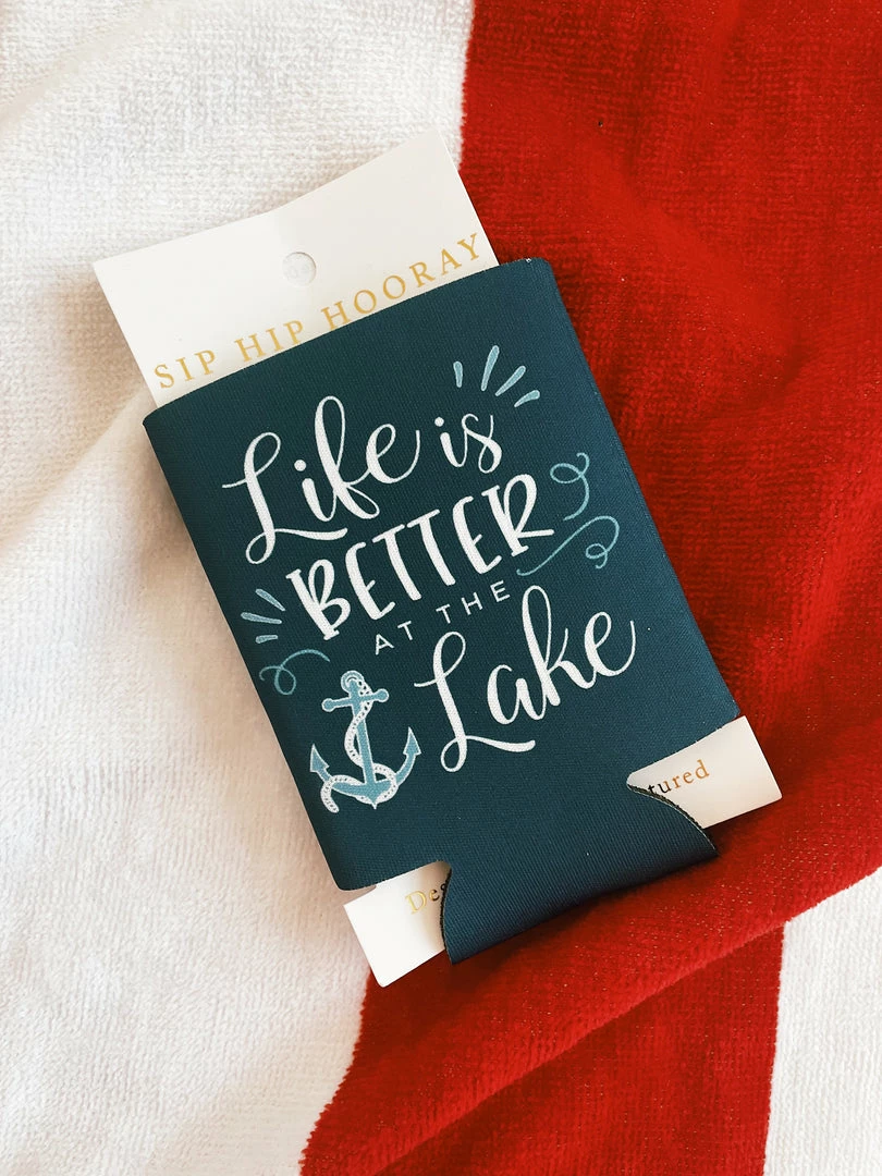 Our Life Is Better At The Lake drink sleeves are a great addition to your home bar, perfect for any vacation, and make amazing gifts!