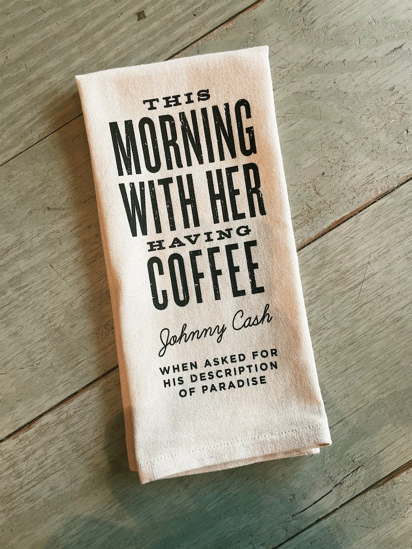 This Morning With Her Having Coffee – Johnny Cash Quote Kitchen Towel