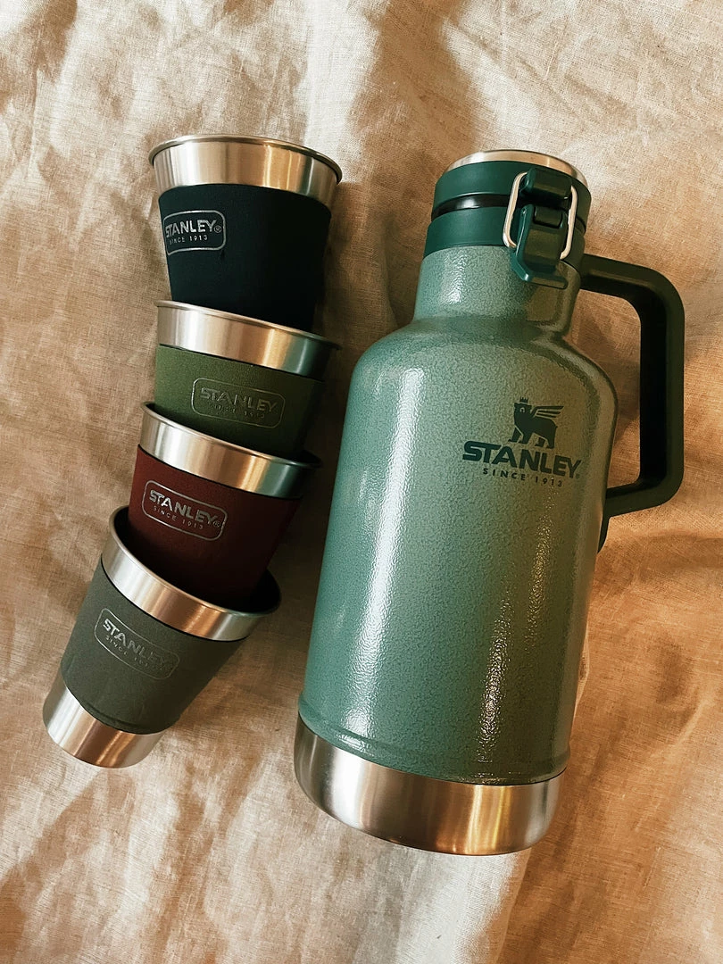 It’s the only party pack you’ll ever need. The extra-large growler features Stanley’s tough construction and cold-trapping insulation with a heavy-duty steel-lined lid to keep your beer fresh and bubbly for 24 hours. The rugged handle lets you carry and pour one-handed, and the four stackable stainless steel tumblers are color-coded to avoid accidental swaps. Fill, pour, serve, cheers.