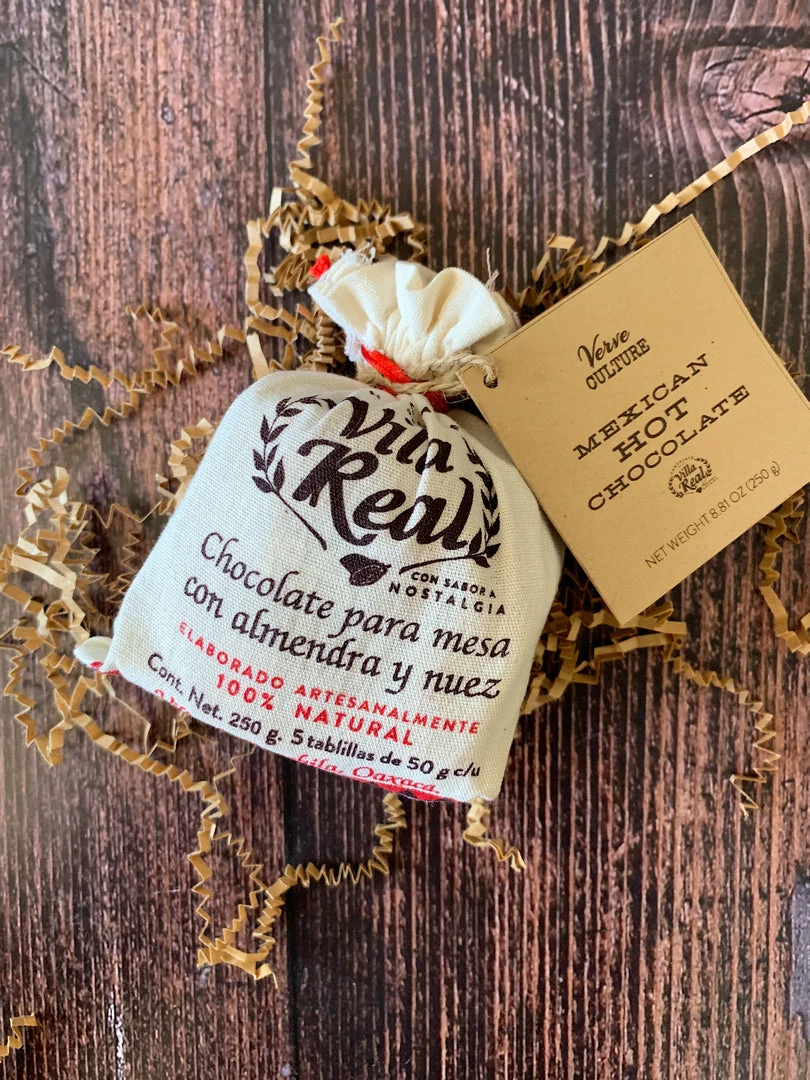 Villa Real chocolate from Oaxaca is made with simple ingredients of cocoa butter, sugar, almond, and other nuts and spices, resulting in the most delicious cup of Mexican Hot Chocolate you’ve ever tasted. Mix with warm milk and froth together with our handcrafted traditional molinillo. (Jug and Molinillo not included).