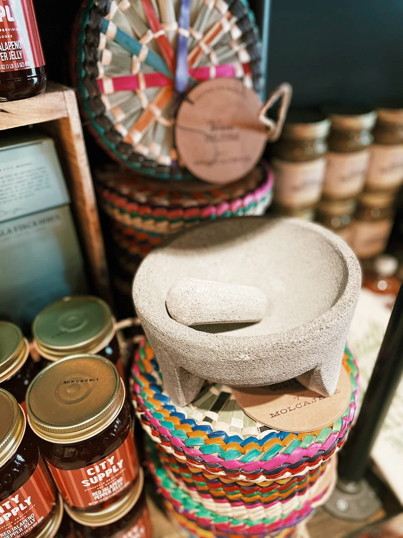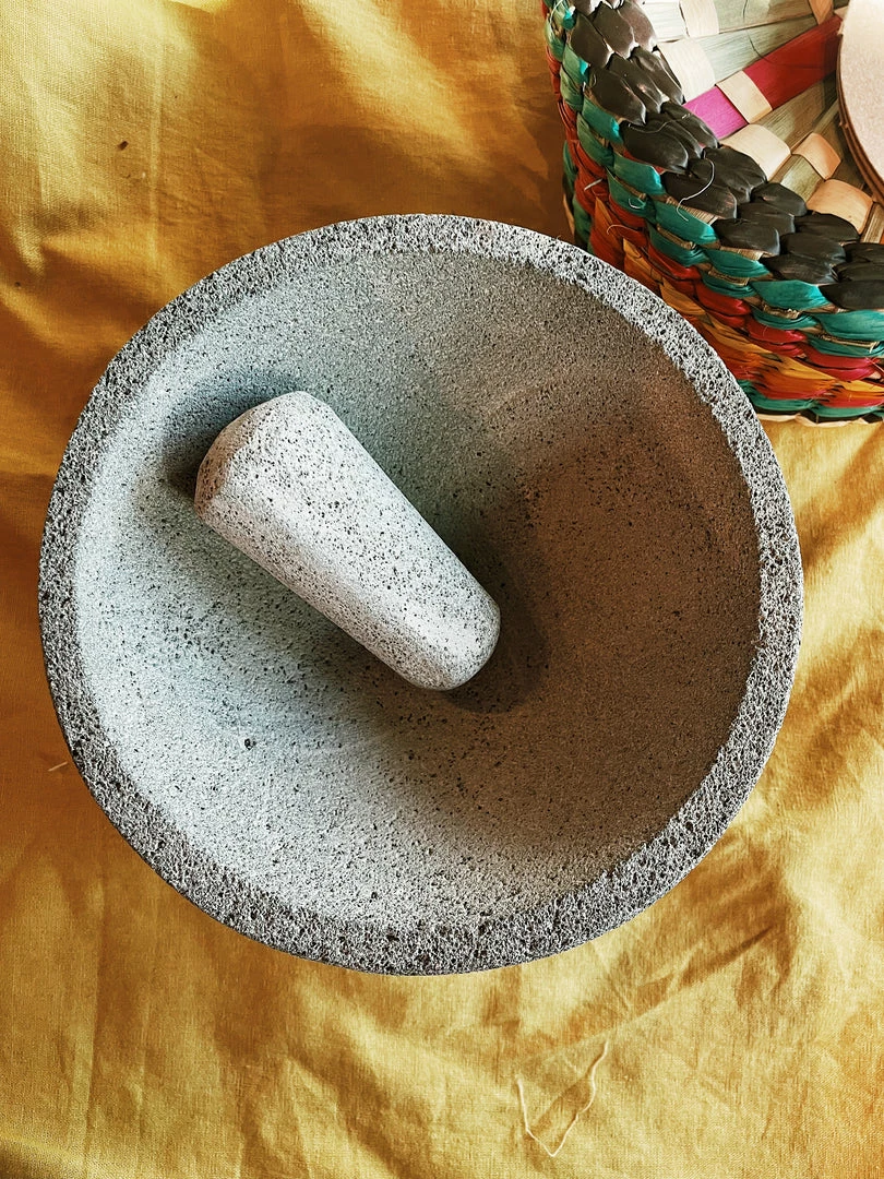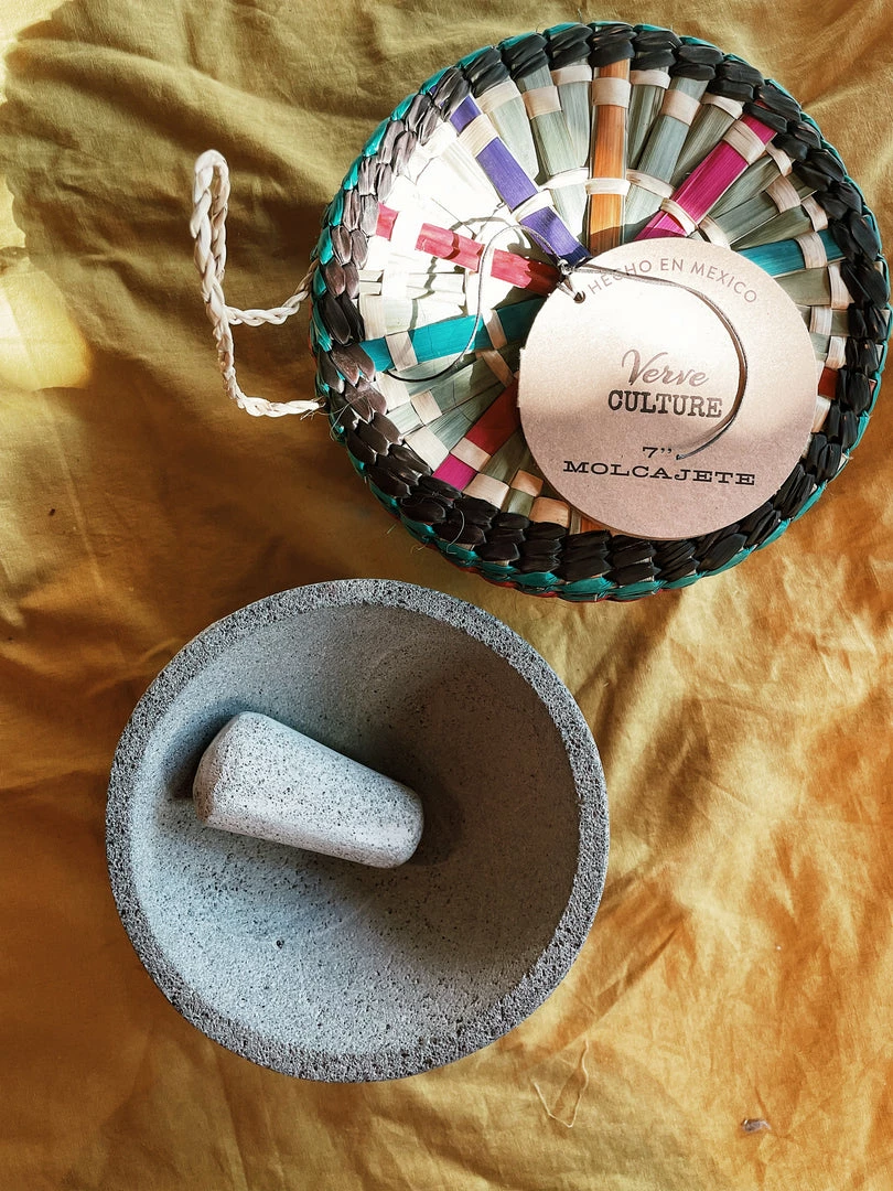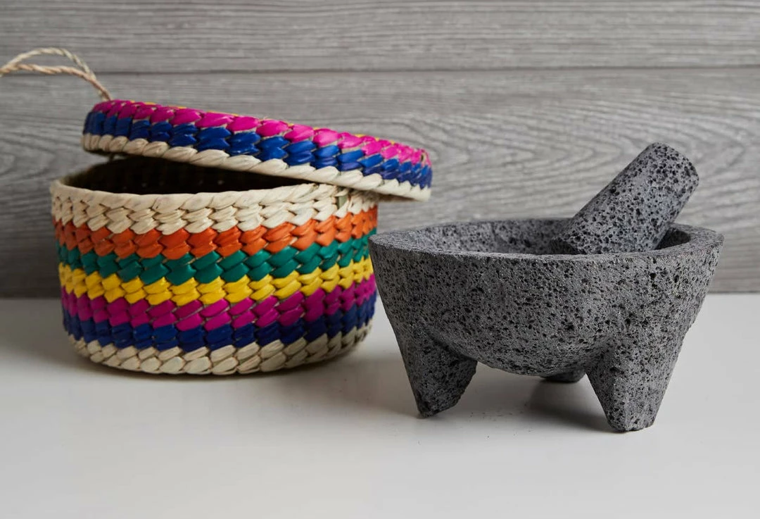 The use of molcajetes stretches back thousands of years. Made of volcanic rock, this Mexican-made mortar and pestle makes unmatched guacamole, salsas and oven-baked dishes. Traditional tortilla warming basket included.