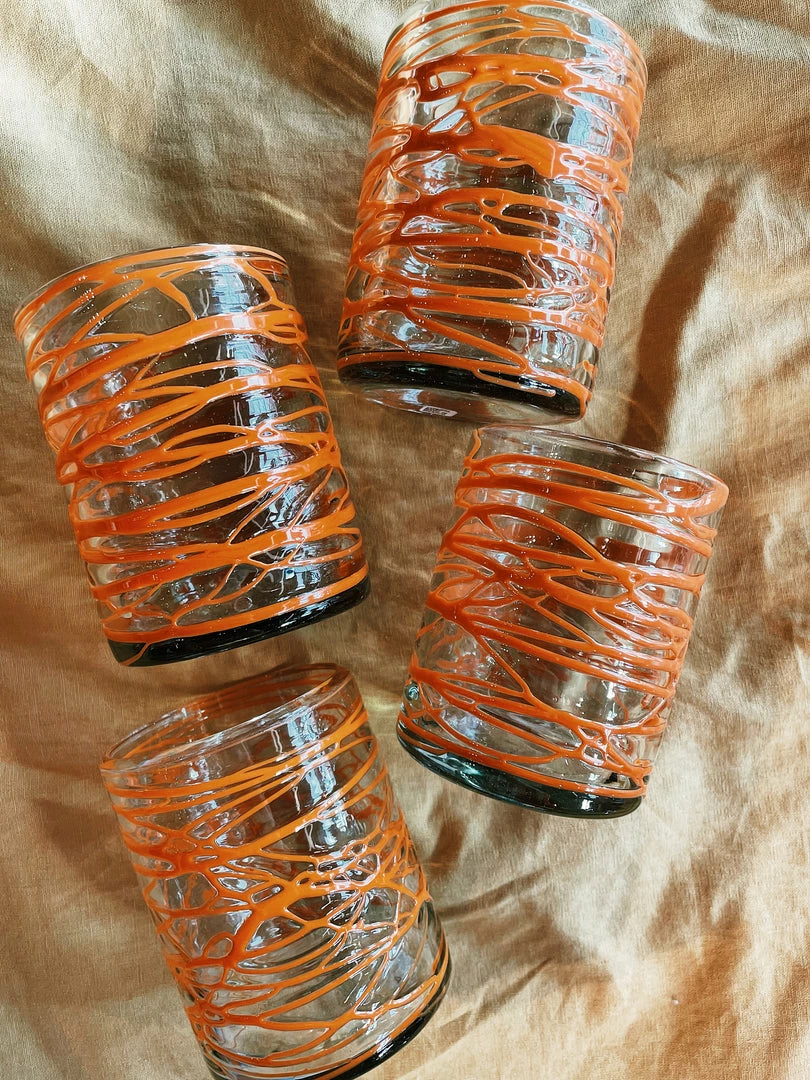 Made from recycled glass bottles, these glasses are handblown and crafted by artisans in Jalisco, Mexico. Each piece is special and unique due to the hand-crafted nature.Â
